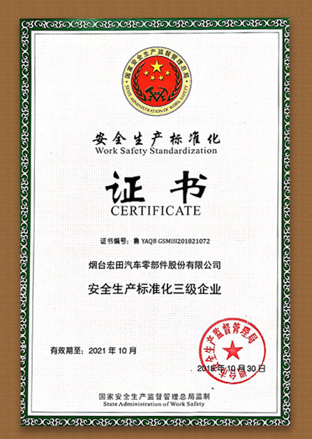 Standardization of production safety, through the establishment of responsibility system for production safety, formulation of safety management system and operating rules, investigation and control of hidden dangers and major hazards, establishment of prevention mechanism, standardization of production behavior, so that all production links meet the requirements of relevant laws, regulations and standards for production safety, human (personnel), machine (machine). Machinery, material, law, environment and measurement are in good production condition, and continuous improvement has been made to strengthen the standardization construction of enterprise safety production. Hongtian Company has obtained the certification of "three-level enterprise of safety production standardization".